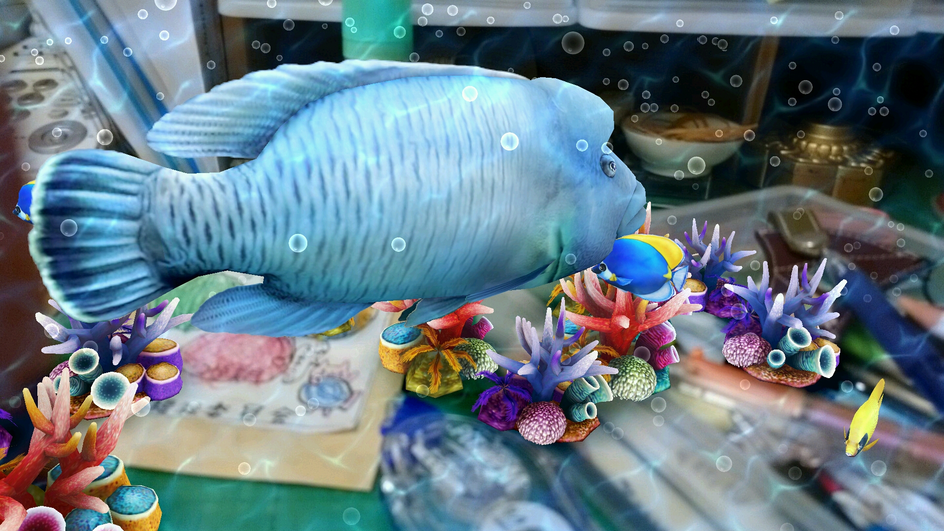 殺風景な机の上が海の中に…
