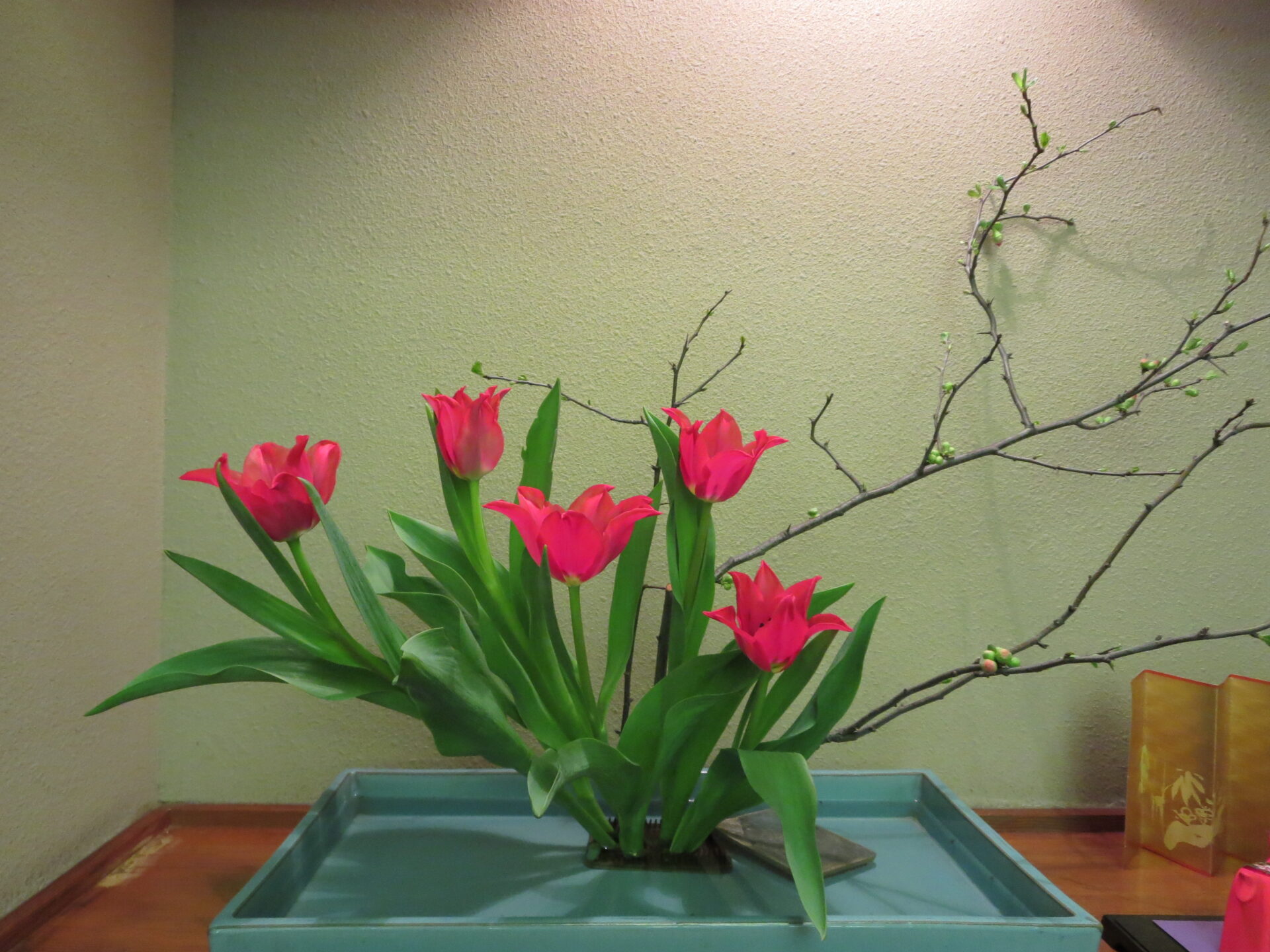 木瓜に元気なチューリップを合わせてみました