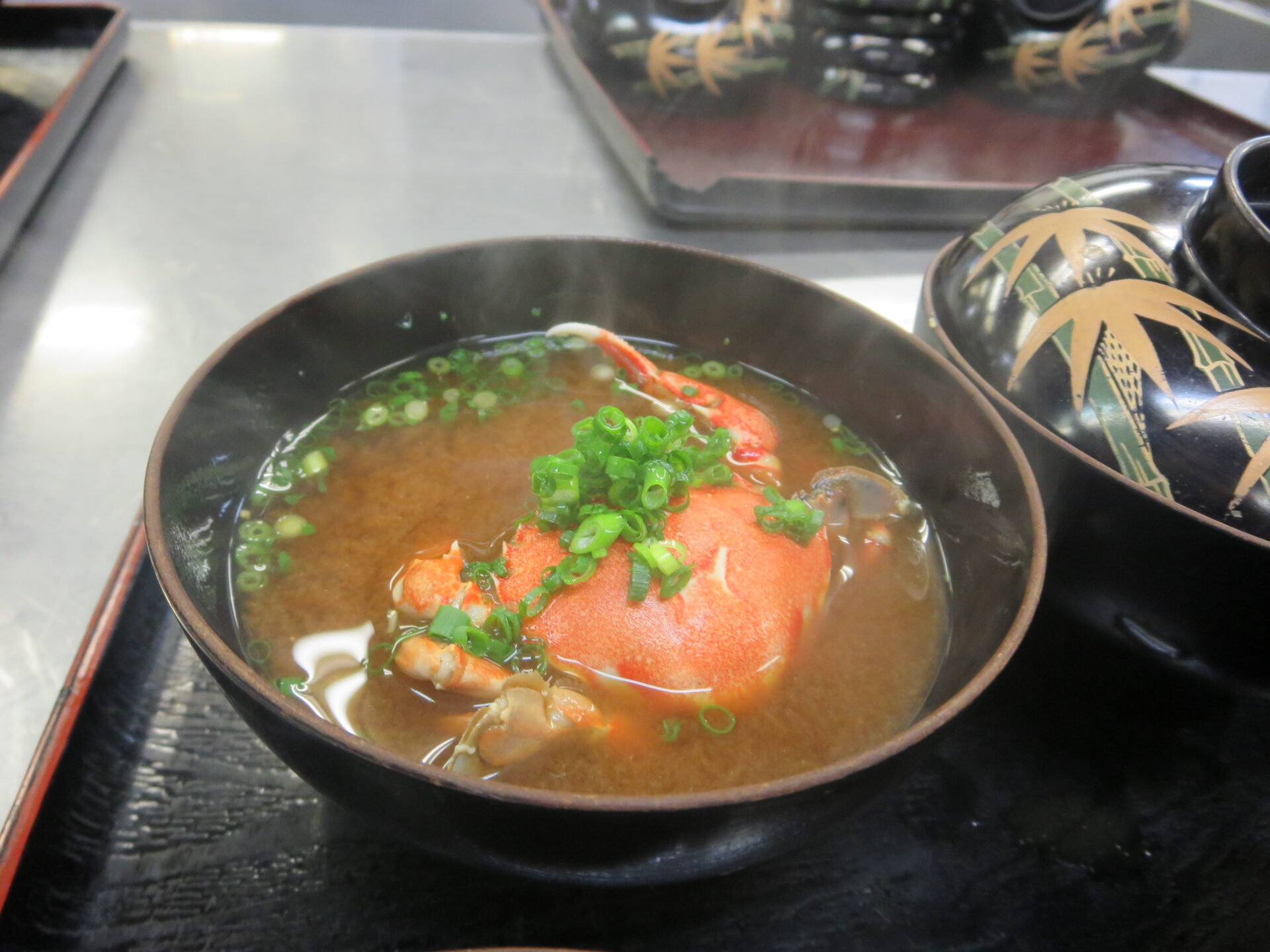 今日の一品、渡り蟹のお椀。いいお出汁が出ています。