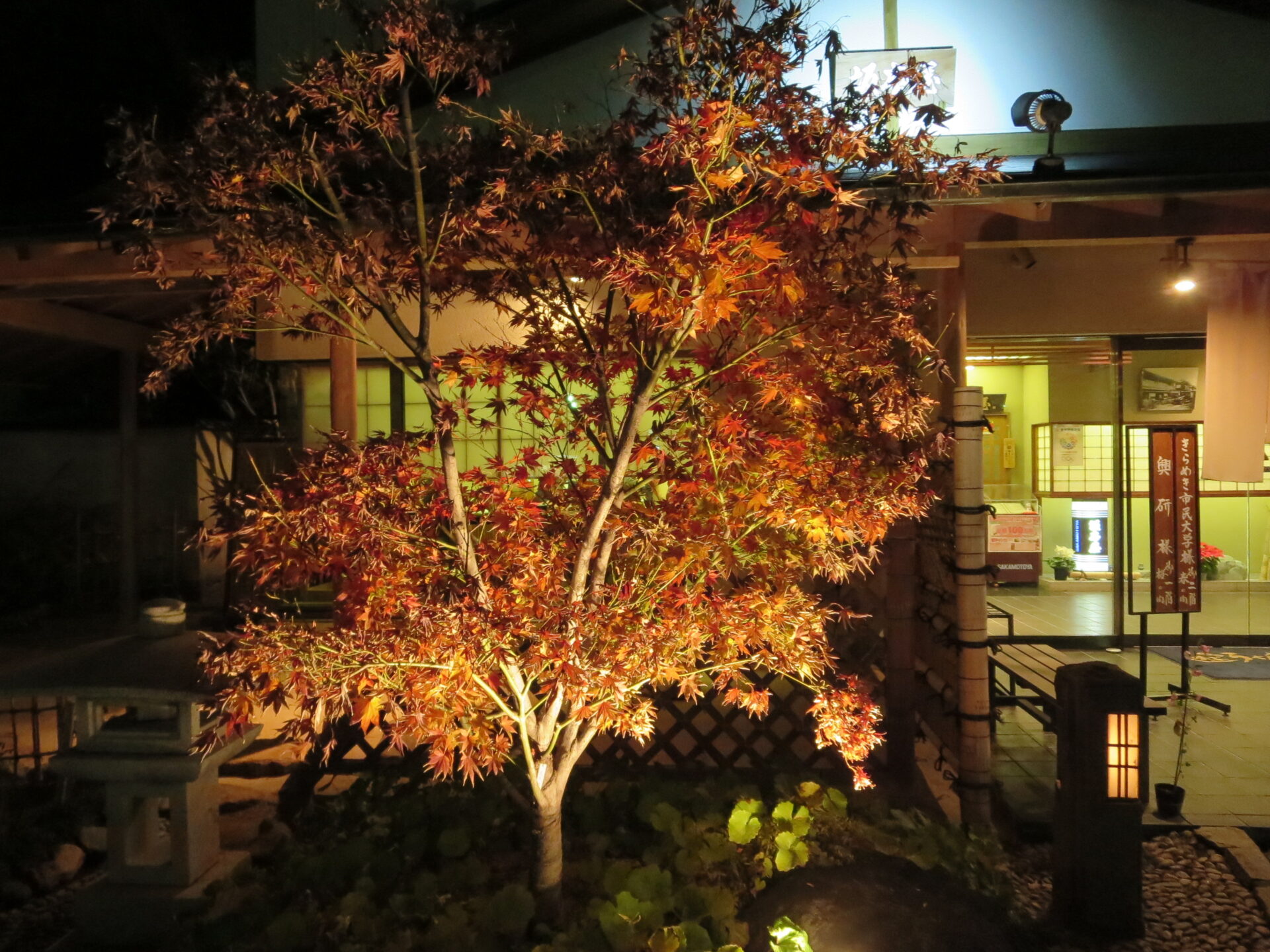 三角錐のツリー、優しくひかります。