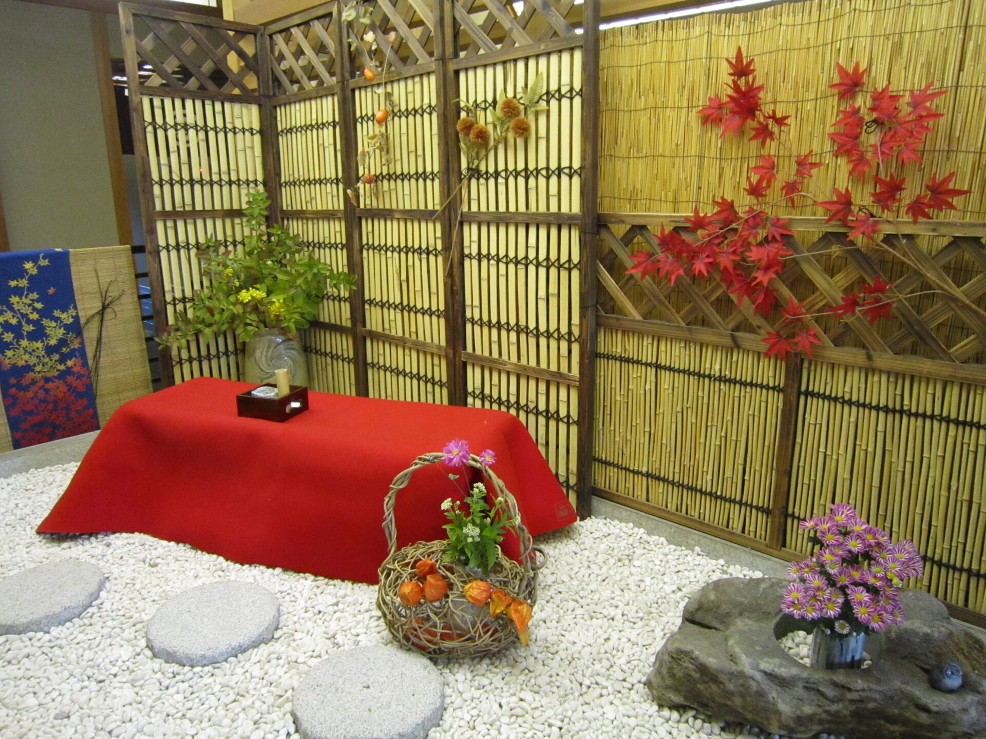 1Fの坪庭にモミジ・ズイナ・キクなど飾り付けました。すっかり冬支度。