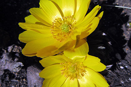 当店の庭に今年も福寿草の蕾が土の中から顔をだしました。