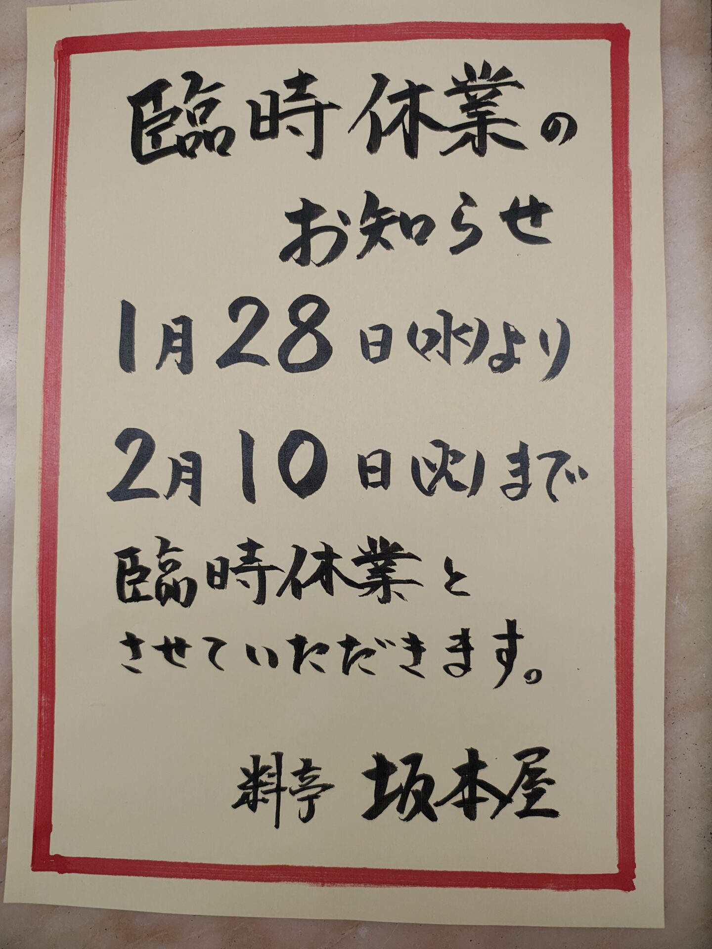 臨時休業のお知らせ